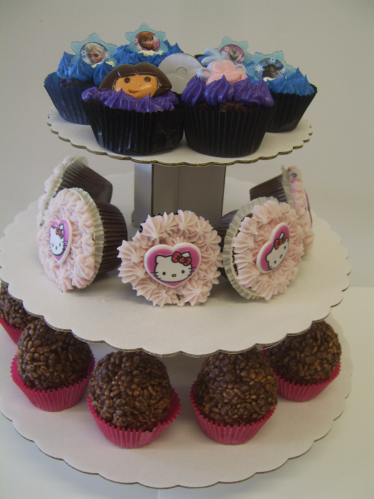 Súkkulaðimuffins með smjörkremi og hring með Dóru og Klossa. Lágmarkspöntun 8 stk.