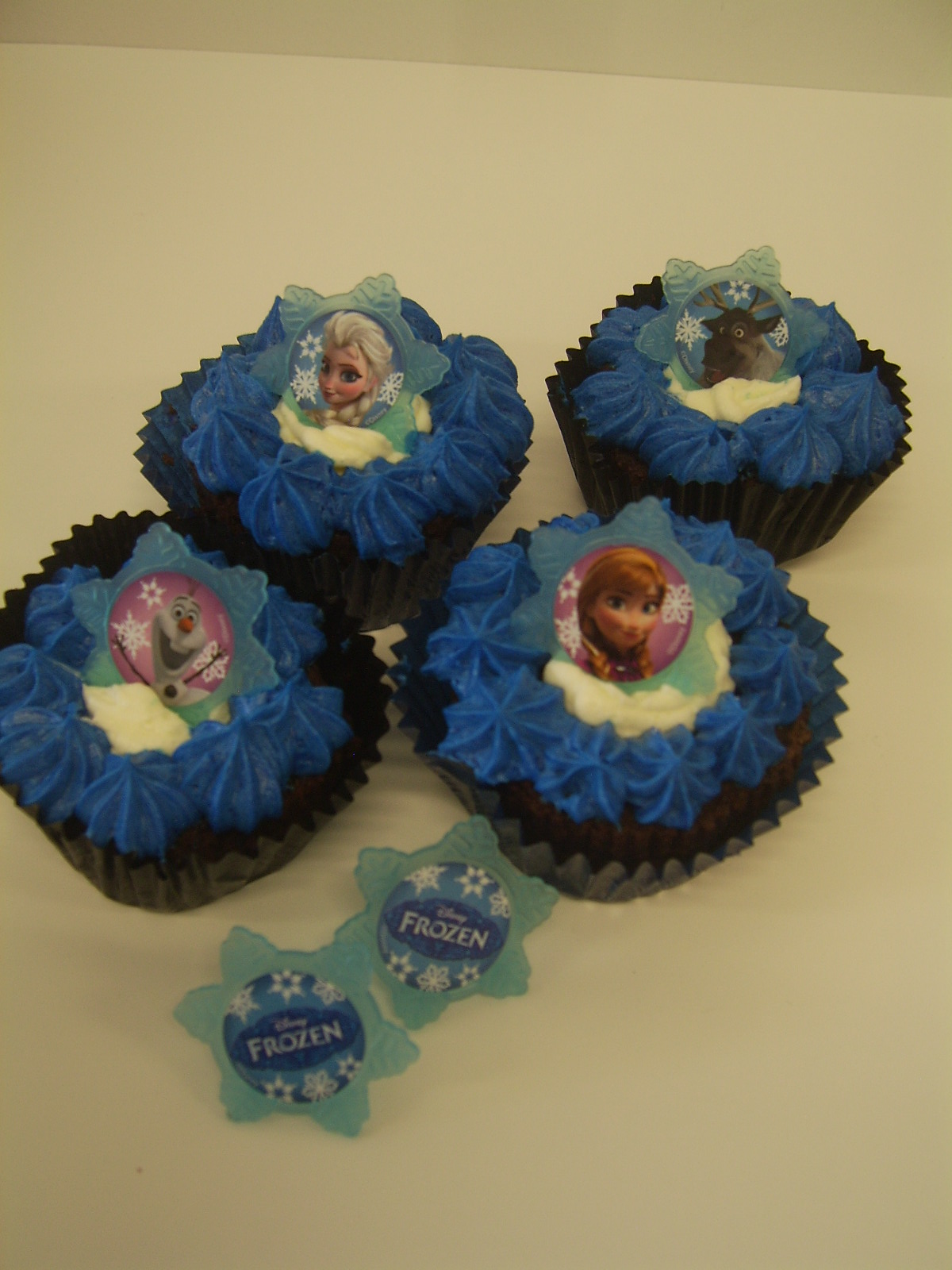 Súkkulaðimuffins með smjörkremi og hring með mynd af Frozen fígúrum. Lágmarkspöntun 8 stk.