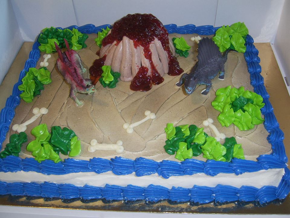 Flestir strákar og stelpur líka elska risaeðlur og þessi afmælisterta er meiriháttar flott, 2 risaeðlur fylgja.