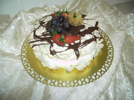 Marengsterta með rommkúlurjóma og berjaskreytingu.