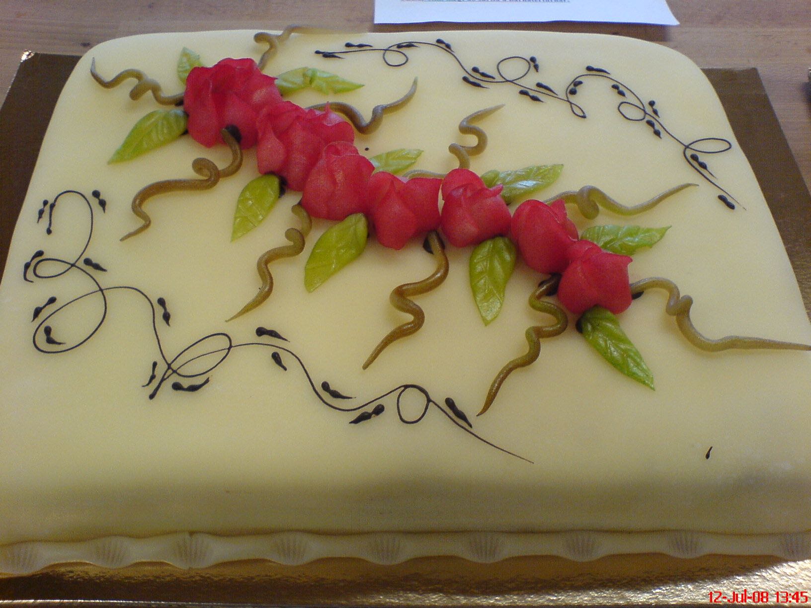 Marsipantertur innihalda 2 svampbotna og frómas og /eða ávextir á milli, klæddar marsipani og skreyttar og/eða áritaðar eftir vali