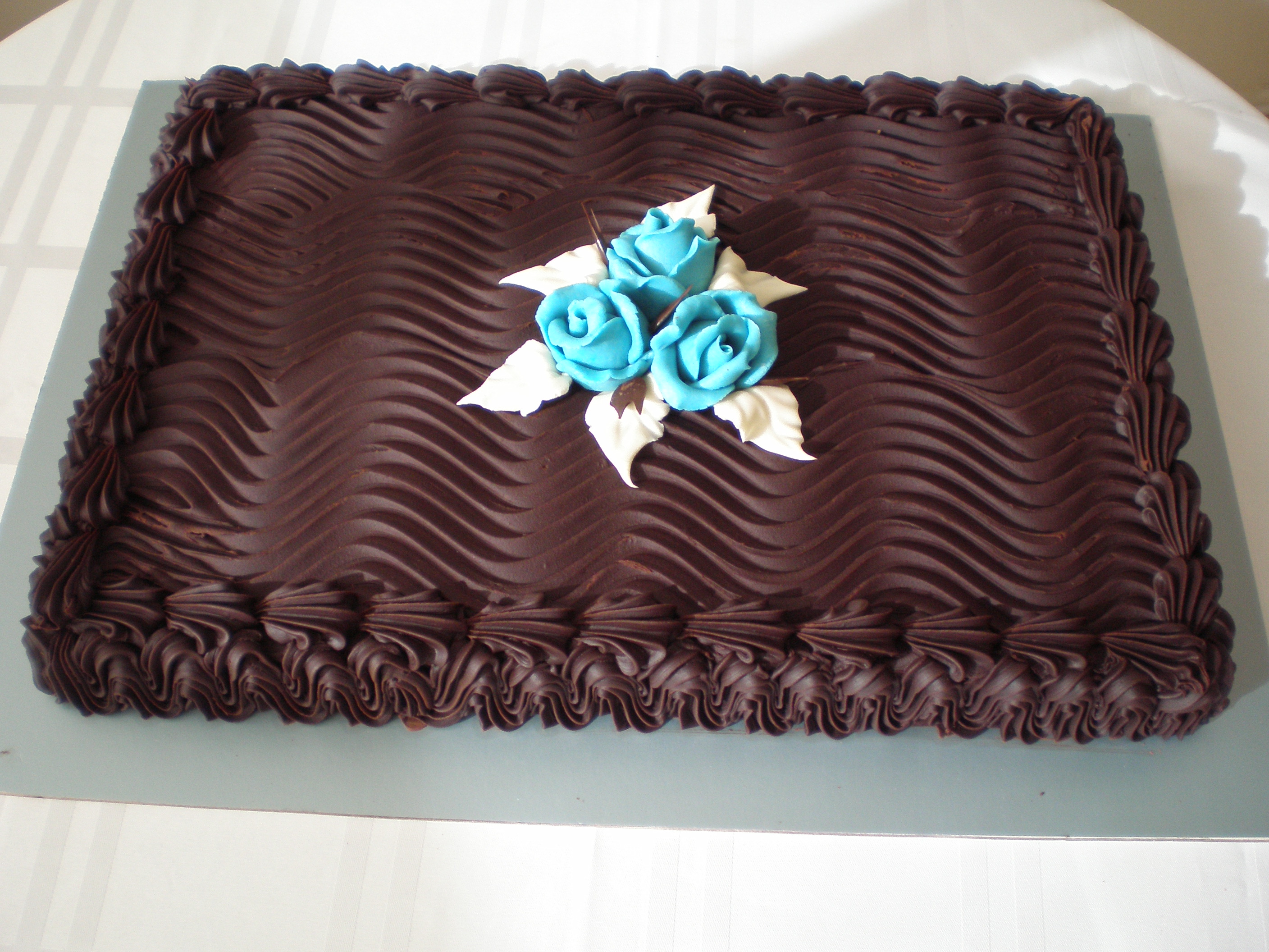 Tvöfaldar súkkulaðitertur með súkkulaðikremi á milli og ofan á, skreyttar með marsipanblómum eða berjaskreytingu.  Einnig er hægt að fá mynd á súkkulaðitertuna og kostar hún 1.600 kr. aukalega.